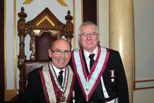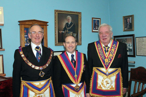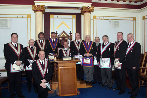 The ceremony was nothing short of spectacular - the Lodge and every visitor was so impressed with not only the ritual, but the great atmosphere in the Lodge. Robert Allman installed his successor John Cash in fine style, and had obviously put a lot of work into his preparation. Peter Burrows explained the keystone, Brian Lawrence did the Tools, Sandy Winnett addressed the WM, Chris McNab addressed the Wardens, Alan Perks the Overseers, and I was honoured to address the Brethren. | |