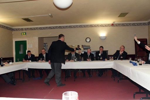 John Cash, the new WM thanked all the members for helping him get to the Chair, and mentioned Sandy Winnett in particular, who is stepping down as secretary after 22 years of sterling service! He is however only stepping down as far as Assistant Secretary.......so he will still be helping. In a brief response, Sandy thanked Chris McNab for his wonderful attendance over the years, for which the Lodge has been truly thankful. | |