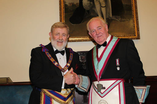 I had the very great honour to talk with Ron Goodyear in the bar, who is not too well at present, but still managed to attend. Ron was WM in 2003/4 in Freshfield Mark, and has served almost 50 years in Mark - a wonderful achievement. Ron has been WM in Craft 4 times, and has served for 60 years! | |
