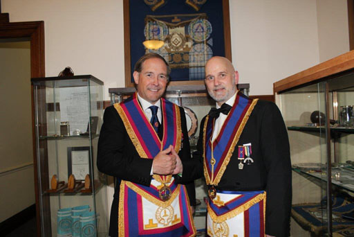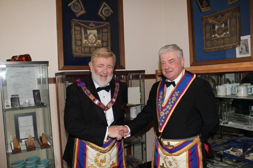 It is a very rare thing for a Grand Officer to represent the PGM at his own Lodge, and even rarer when the new WM is his own brother. Literally, not ritually! So it was a great honour for John Mawdsley, Grand Steward, to be the principal guest for the Installation of his brother Alan, in his own Freshfield Mark Lodge. Rod Bennison had kindly stepped aside when John asked if this rare occurrence might be allowed, but Rod was honoured to still deliver the address to the Brethren, as he had been rehearsing it! He of course delivered it perfectly. | |