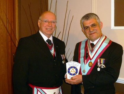 With Grand Lodge Certificates for Graham and Craig Boothroyd available for presentation Keith was asked if would perform the task. However he, with a touch of humour which was appreciated by those present, delegated matters to Ian Nairn who undertook the duty of explaining and presenting them in fine style.