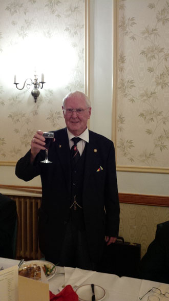 George raises a glass to the Brethren present. | |