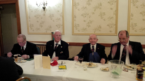 At the festive board later the W. Com. Bro Kevin Collins presented George with a gift from the brethren to mark the occasion, a bottle of old malt whisky and a suitably inscribed crystal whisky glass to sample the nectar. | |