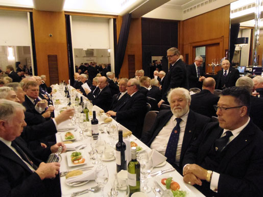 Grand Lodge was opened in ample form and domestic items of business approved. Then the Grand DC formed an escort (including our RW PGM Peter Connolly) who retired and accompanied RW Bro Richard Wallis, who was obligated, invested and Installed as our new Pro. Grand Master. In similar fashion the Deputy Grand Master, RW Keith Emmerson and Assistant Grand Master, RW Bro. Ray Smith were Installed. | |