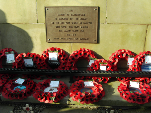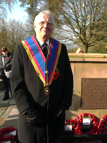 A number of Mark Masons from Ridgmont Lodge of Mark Masons attended, which started at the Railway Works memorial then wended its way through Horwich, stopping at the Public Hall where a two Minutes silence was held then on to the Garden of Remembrance in Lever park Avenue, where a service was held then the laying of Wreaths by the different organizations in Horwich. The wreath from the Mark Masons was laid by W.Bro. Peter Schofield. (above)