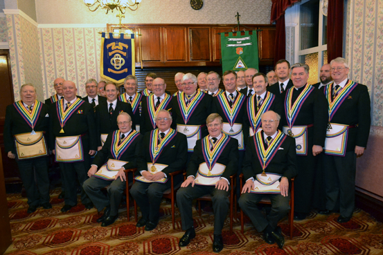 The Provincial Grand Master, Peter Connolly was accompanied by Assistant Grand Master, Ian Nairn and Special Representative Ken Alker, together several other Grand Officers and Provincial Grand Officers. | |