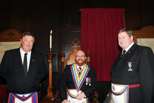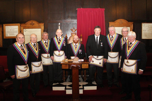 Friday 28th February saw Morecambe RAM Lodge elevate John Henry Mayor, and accept into their ranks Neil McGill as a joining member. A special night indeed, made even more special because they were honoured by the presence of our Deputy PGM Keith Beardmore. He had attended the Installation meeting last time, and had urged the Lodge to go out and seek new members. As the Lodge took note of what he advised, he thought he should really go back and thank them! |