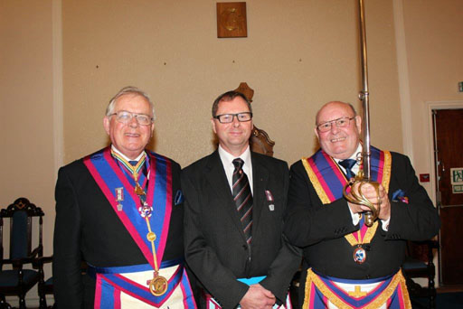 As IPM, David Fairclough thanked our hard-working PGM for attending this meeting, his second of the day, after Unity Mark Lodge at lunchtime. The PGM responded by welcoming Michael Hession into the Degree, and informed us that this was the first time he had sung the MMM chant. He also praised Norman Stringfellow, who did the ceremony in its entirety, including the working tools, in an amazing performance. Eric Drinkwater and David Fairclough are both to be honoured at Grand Lodge in June - both are to be Past Grand Overseer, Very Worshipful Brothers. The news was greeted with loud applause.