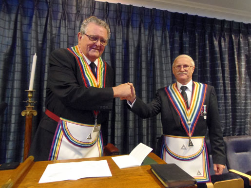 Ken Roulston congratulates Bro Edwin Fisher W.C. |