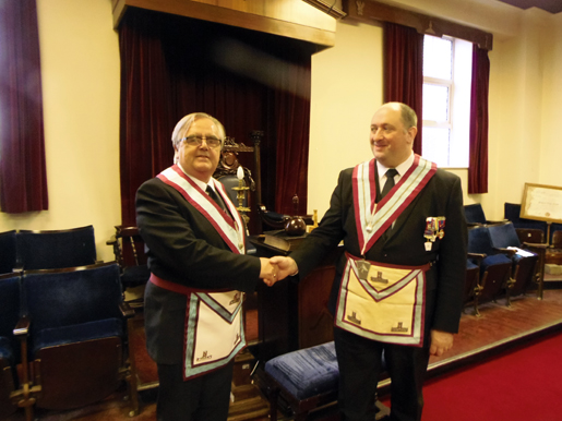 I.P.M. John Sarti Congratulates New W.M. Mike Armstrong |