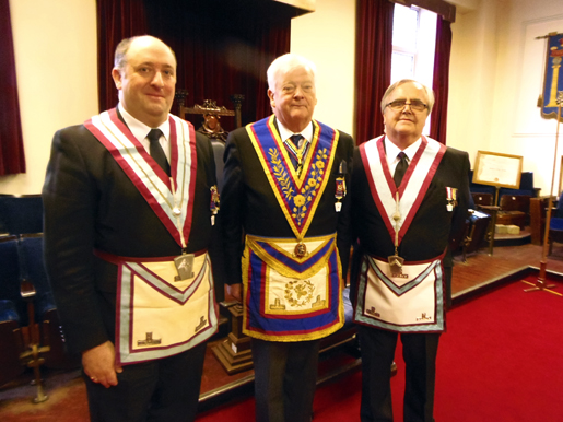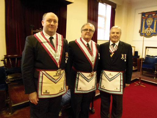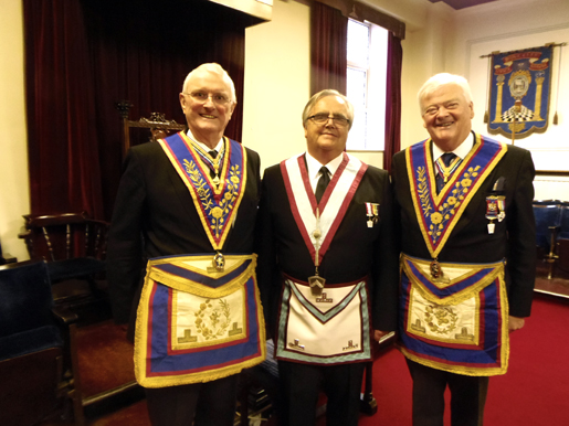 W.M. Mike Armstrong with Bob McGown and W.Bro Ian Taylor P.G.S.D both of whom were Prov.Wardens. |