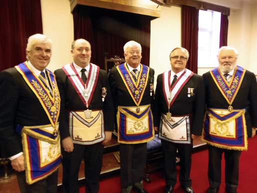 R.W. Bro. Tom Jackson P.G.J.W. V. W. Bro. Paul Snape P.G.J.O. (P.G.M.’S Special Rep.) W.Bro. Ian Taylor P.G.S.D. and W.Bro. John Hartley Smith P.G. Stwd. Asst Prov G.M. (East Lancs) |