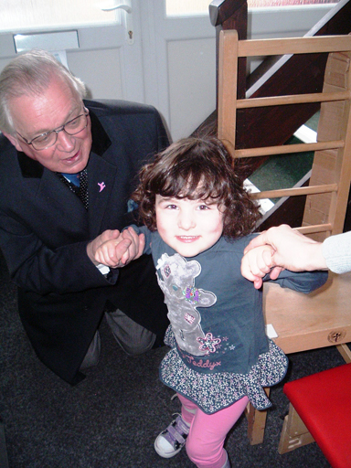 The presentation was of two specific aids a “balance beam” to improve stability for use by Amelia and general use, also two walking aids, specially designed walking sticks with four “legs” known as “Quads” these for exclusive use by Amelia and adjustable to cover several years of growth. This relatively modest bequest of under £200.00 has made a marked improvement in Amelia’s mobility. It is my opinion that your money has been effectively spent. | |