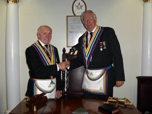 John Cooper congratulates Peter Schofield on his forthcoming appointment to Prov.R.A.M.G.R. | |