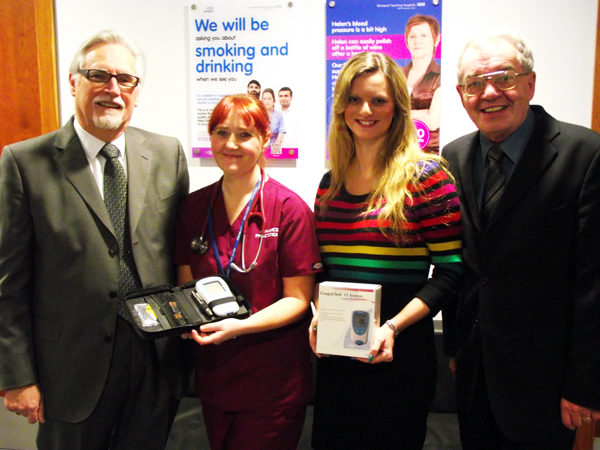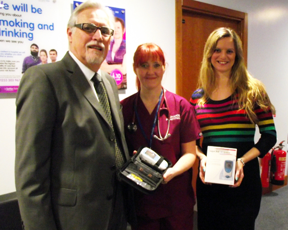 The WM of Thornton Cleveleys Lodge No 7540, Peter Clay, had two very special reasons to pay a visit to Blackpool Victoria Hospital. One reason was to thank one of the hospital’s cardiac advanced practitioners, Sam Kilmurray, for setting him on the road to recovery and the other was to present her with a much needed piece of equipment. This vital instrument was to express his gratitude further for the life changing treatment he received from her and also to help other patients visiting the hospital’s cardiac unit.