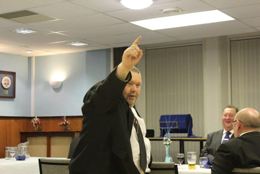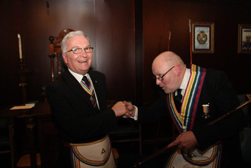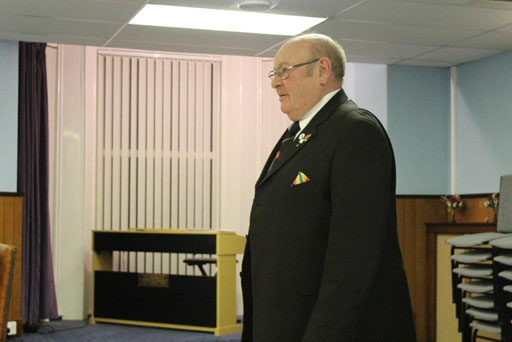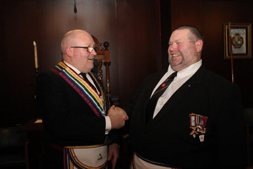 Stuart Brackstone represented our ProvGM Peter Connolly, and what a great job he did, putting us all at our ease with his friendly and welcoming manner. He commented in the meeting on the absolutely exemplary ritual performed by Alan Fairhurst, saying we would not see better anywhere. Knowing Alan as we do, we expected nothing less! | |