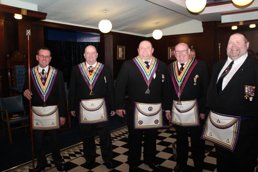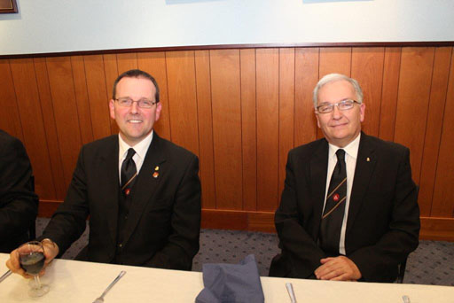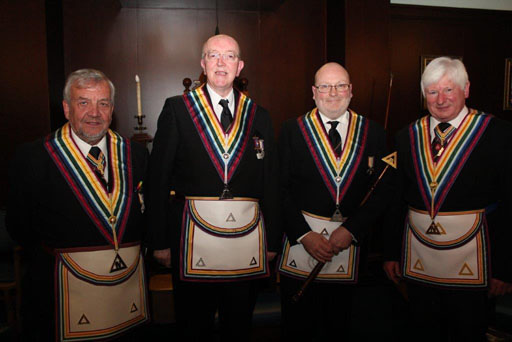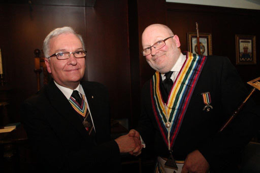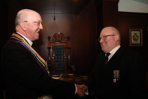 It is always a happy occasion when a new set of officers are installed and invested in any Lodge, but Semper Fidelis RAM also celebrated a wonderful year for the outgoing Commander, Alan Fairhurst, who performed to the highest standard all year, and particularly whilst installing his successor, Joe O'Brien. | |