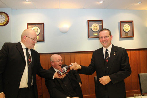 Stuart also thanked the Lodge for the wonderful donation of £250 which he asked to be duly minuted. He thanked our very hard-working Scribe Jimmy Rogers, David Bell, Harry Cox and Brian Gregson for all their work, and thanked the Lodge for a wonderful evening. | |