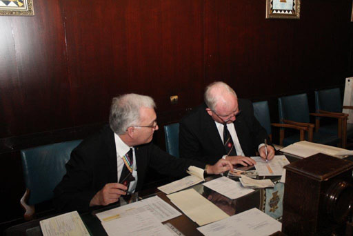 Jimmy Rogers, scribe, and Harry Cox Treasurer, hard at work |