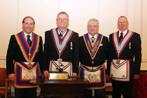 Neil Latham is to be PrGSD in May at Southport, but is also the next Treasurer for the Craft Province of West Lancs, and the Royal Arch. A busy man indeed, as well as doing a great job as secretary of Southport Mark Lodge. Colin Jenkins, as well as WM of Southport Lodge, is to be the next Group Chairman of the Southport Craft Group, and Martin Lockyear is to be the next PrJGW in Craft. All these brethren received a very warm round of applause for serving Masonry so well, in this talented Lodge. | |