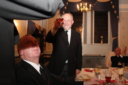 Brian Povey proposed a lovely toast to Colin Jenkins, who responded after Brian Molyneux and John Mawdesley treated us to a wonderful duet to honour the WM, accompanied by Malcolm McCarthy on the piano. | |
