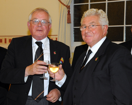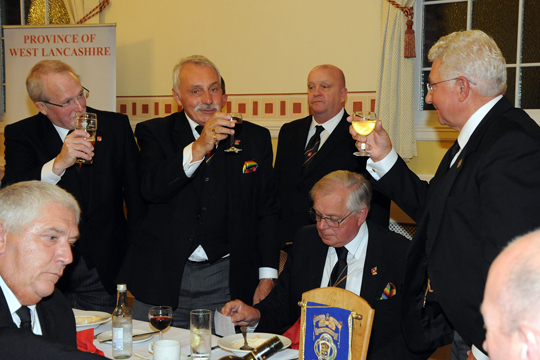 The brethren were readmitted, officers invested and addresses delivered. The Provincial Grand Master gave his greetings and made special mention of Darren's performance before retiring with the team. | |