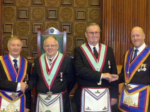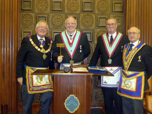 Although it was only 15th December, The R.W.PGM and all those attending were treated to a festive present which unwrapped into a first class ceremony preformed by W. Bro Alexander Mclagan Kean, (Sandy), who installed Bro Steven James McNee into the chair of the Lodge. The addresses were done by W. Bro Bill Grimoldby P.Prov.G.S.W. (To the WM); W.Bro Arthur Robinson Prov G.S.W, (to the Wardens) and W.Bro Tony Farrar Prov G J.W (to the overseers).  The address to the brethren was delivered by the R.W.PGM Peter Connolly.