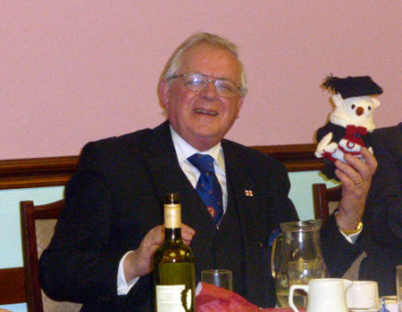 An excellent festive board was enjoyed by all and who were now getting to the festive spirit.  The toast to The R.W.PGM was given by V.W.Bro Michael Clarke Ass Prov GM, who informed the gathering of The R.W.PGM honorary title given to him by a Brownie pack of ‘Wise Owl’ and at which point Michael presented the PGM with a Knitted Owl.
