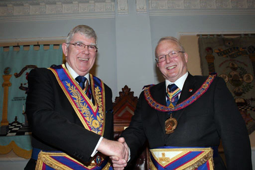 Tony Harrison responded by thanking all the members for his superb year in the Chair, and spoke kindly of Bob McGown. Bob had been an electrical engineer in the Mid and Far East, returning to become JW of the Mark Province, and to serve 50 years in Mark Masonry. He has served as secretary of Fylde Mark, and his Craft Lodge. Tony pledged his support to Bob for the next year. | |