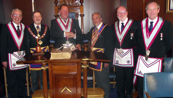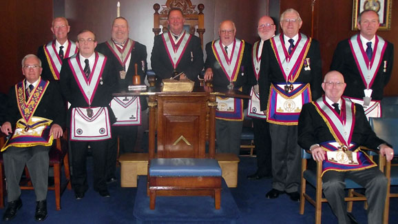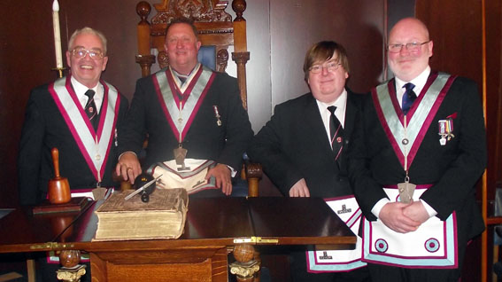 Derek invited Provincial SW Giles Berkley to assist him by assuming the duties of ISW, Tony Alderton, who is soon to receive promotion at Provincial Grand Lodge, those of IJW and Frank Kennedy to assume position as IIG.