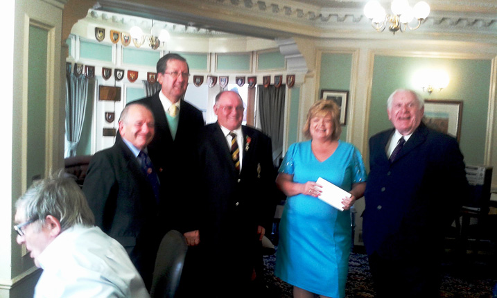 An amount of £160 was raised at a Sunday lunch on Remembrance Sunday 2014, a further £ 90 was donated by West Lancashire Mark Masons charities, which was added to the original amount and a cheque of £250 was presented by Derek Horrocks (Special Representative for Garston to Jacqui Longden (Care Home Manager)