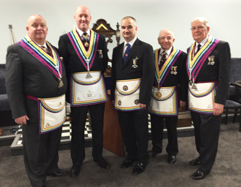 At the December meeting, Bro Shaun Haynes, a member of Imperial Mark Lodge No 1276 and the Provincial organist joined the order and at the February meeting Bro Patrick Albert Dwyer a member of Fylde Mark No 296 became a RAM. | |