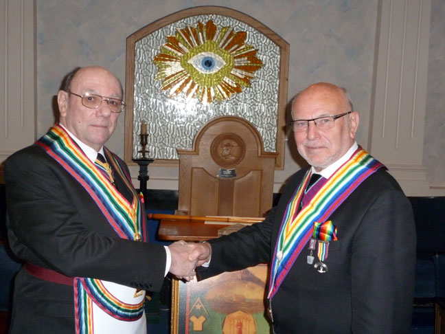 The greetings of our new PrGM Bro Keith Alan Beardmore were given by his representative David Emmerson, after which we all retired to the dining room where an excellent meal was awaiting. | |