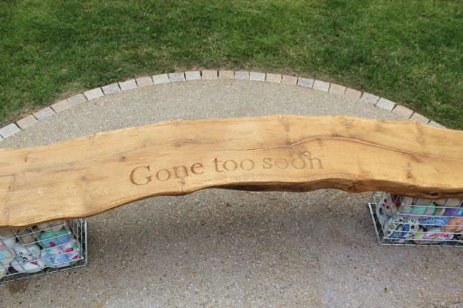 Fylde Mark Lodge, prompted primarily by Rory and Mrs Maskell, decided to donate a wonderful bench to the garden, comprising of a very large single wooden seat, supported by legs which contain pebbles with the names of lost children painted in bright colours. The Mayor of Fylde, Councillor Peter Hardy and his wife, officially opened the garden, and many Council, Hospital and Sands representatives spoke, and read poems which were very touching. The parents of deceased children then placed copper memorial leaves on the main Memorial Tree, designed by local designer Philippe Handford. There was not a dry eye in the garden. The Fylde Mark Lodge was sincerely thanked for the bench, which has pride of place in the garden. |