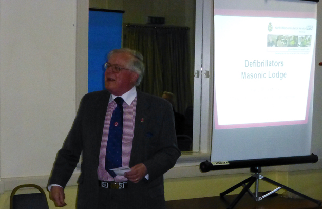 Our Provincial Grand Master welcomed everybody, and outlined the purpose of the evening, the introduction of various people took place, including the following, Kevin Garvey (representative from the defibrillator supplier and presenter for the evening), V W Bro Michael Clarke, Assistant PGM (organiser and negotiator for the supply and installation of the defibrillators’) W Bro Tony Farrar Provincial G.J.W, also the Craft Liverpool Group Vice Chairman W Bro Bob Povall. | |