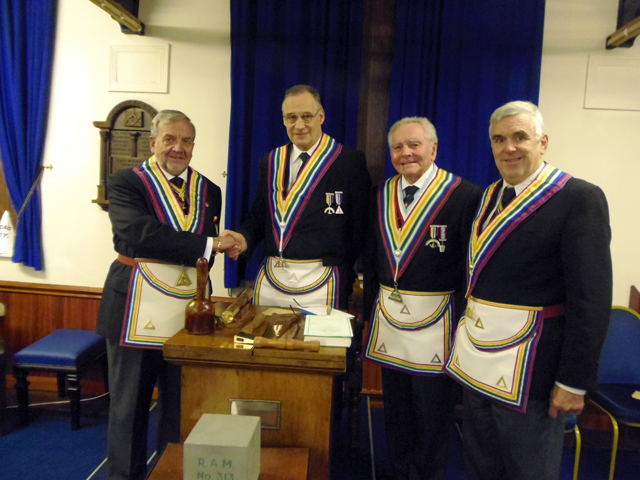 W.Bro. John Forster RAMGR Rt.W.Bro. Tom Jackson RAMGR, W.Bro Russell Green, W.Bro. D. Moss. W.Bro. Paul Snape RAMGR
