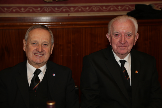 Dennis Houghton the WC of Leigh RAM skilfully delegated the work at the installation meeting. Dennis is over 80 years young and is keeping is strength up for his 50th anniversary in the Mark Degree this coming October. He has already chosen the meal for the evening. | |