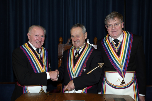 The Lodge was opened by its senior member W Bro Ian Clark RAMGR who welcomed the Representative of the RWPG John Cooper and after conducting the business part of the meeting Ian handed over to WBro Cyril Broome PrRAMGR for the main event of the evening to install Bro Derek Todd as WC for the ensuing year. The DC WBro Walter Lyon PrRAMGR presented Derek to the WC, the usual questions were put to the commander elect and the obligation taken. The ceremony was conducted in Cyril's usual style with warmth and sincerity. | |