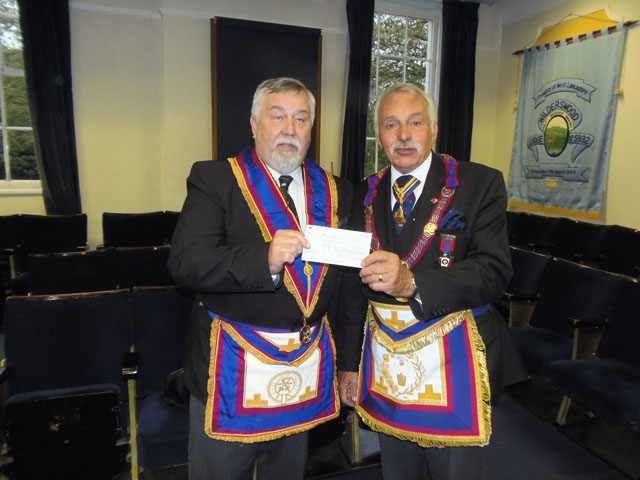 At the Installation Meeting of Ridgmont Mark on Friday 16th May, the Lodge presented him with a cheque to the value of £100.00 in aid of the Nepal Disaster Relief. | |