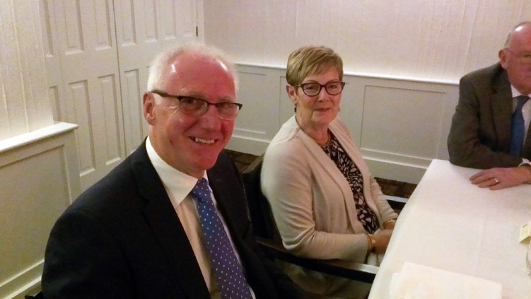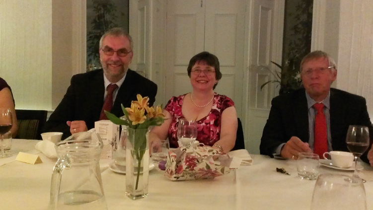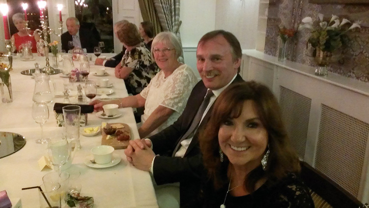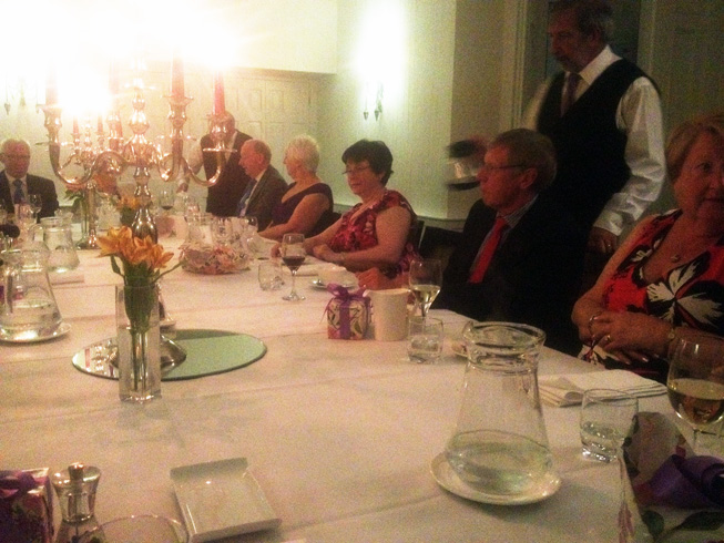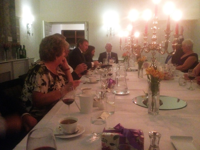 A splendid Friday evening dinner around a large table to accommodate the eighteen guests allowed for good conversation, getting to know each other as this was the first time some had met due to several PGM's having been Installed in the last year. | |