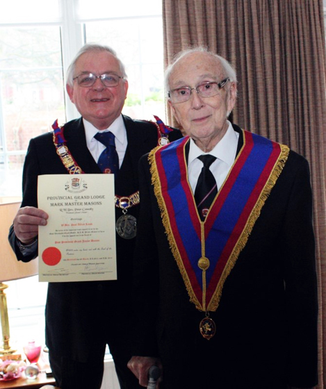 Paul has made a fantastic contribution to Masonry In both West and East Lancashire over many years but of late has not been too well. It was looking inevitable that Paul would not be able to make it to Provincial Grand Lodge in May and certainly not be able to sit through the full ceremony. | |
