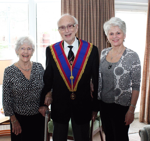 Hearing this news, Peter was only too pleased to fit a visit to Paul's home into his very busy schedule. Close neighbours, Bro. Paul Hardman of Freshfield Mark Lodge No 1007 and his wife, Mary, were also on hand to help with organising the event and supplying refreshments. | |