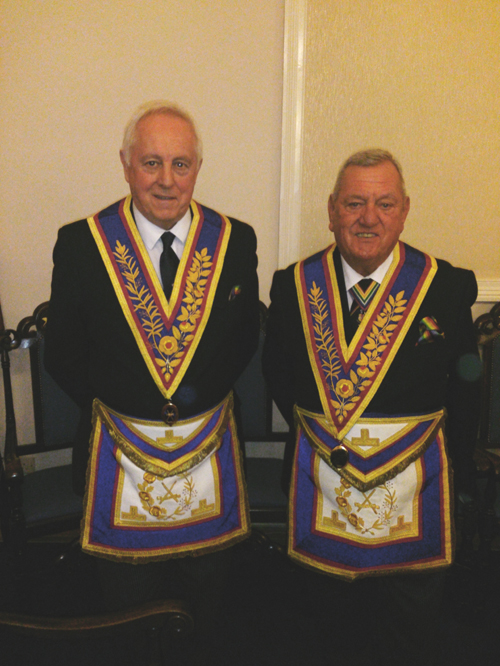 Two of the guests were W. Bros Malcolm Beecroft PAGDC Provincial Secretary of Nottingham Mark Province and W. Bro Pat Westwood PAGDC who were attending to support the candidate after his move to the area. |