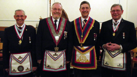 Representing the Provincial Grand Master, Provincial Grand Senior Warden Arthur Robinson and his many distinguished colleagues were welcomed to the lodge by outgoing Master Bryan Snaith prior to a ceremony which was categorised by its great warmth and good humour as he installed his successor Philip Watson.