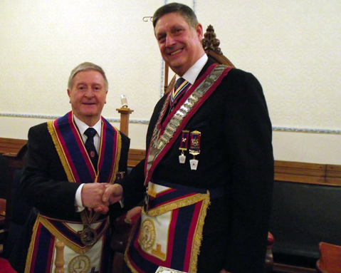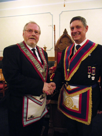 Arthur Robinson (left) congratulates Philip Watson on becoming WM of Prince Setanta.