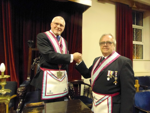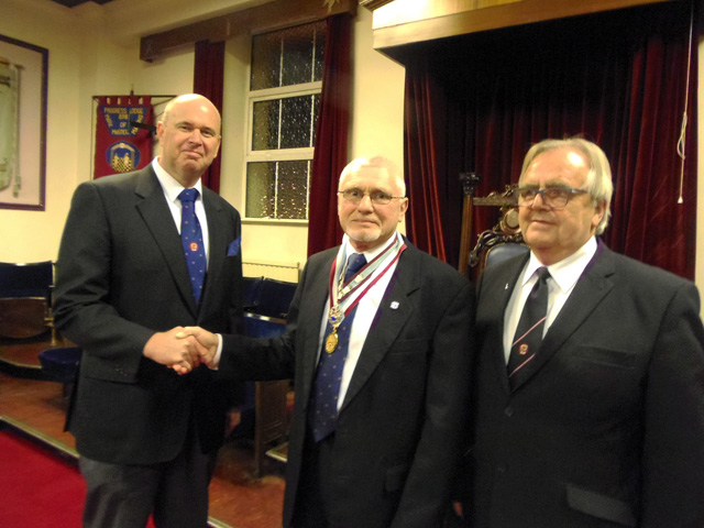 Our new Provincial Junior Warden W. Bro. Tony Cross representing the P. G. M. performed faultlessly on his first outing at Progress Mark Lodge on Monday 12th October 2015 at the Installation of Bro. Alan Eastham. |