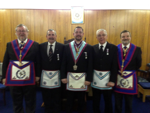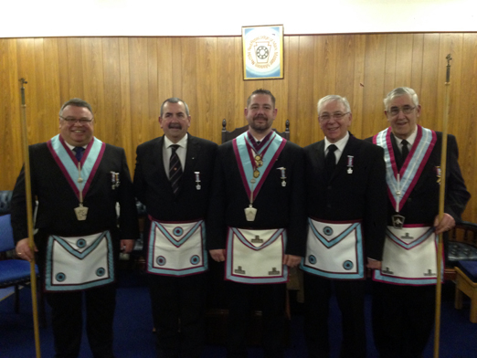 Can you remind me of the password again? The WM , John and Alan are joined by hardworking Deacons, Bro, Ken Wilson SD on the left and W. Bro. David Webster JD on the right. | |