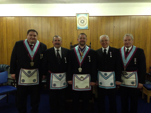 At the meeting of Red Rose Lodge on the 26th January 2015, two new members were advanced into the Mark Degree. The WM led by example in delivering an excellent ceremony ably supported by his officers. The occasion was enjoyed by all present, and particularly by the new members Bros. Alan Johnston and John Bimpson. |