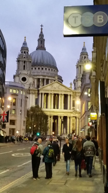 Our distinguished party of your scribe, his wife Jennifer and their very good friends Bill and Steve Hogan set out at 09.58 on Friday 6th November from Preston. On arrival in London and checking in to our hotel we set off to explore London and introduce our friends to some of London ' highlights including St. Paul's Cathedral, the Monument to the Great fire of London in Pudding Lane, the Bank of England and Newgate Street, we stumbled upon a hostelry called the Knights Templar. Being a member of this Masonic Order we thought that we should take a short break and avail ourselves of a small libation or two. We then returned to our hotel for the evening and discovered we had (reportedly) traversed no small distance of approximately 8.5 miles! |