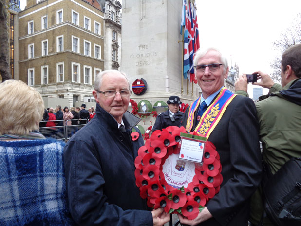 Regrettably, our Team Leader (V.W.Bro. Paul Snape) for expeditions to London to export a West Lancashire Mark wreath on the Cenotaph had pressing family matters which required his attendance in Aberdeen. | |||